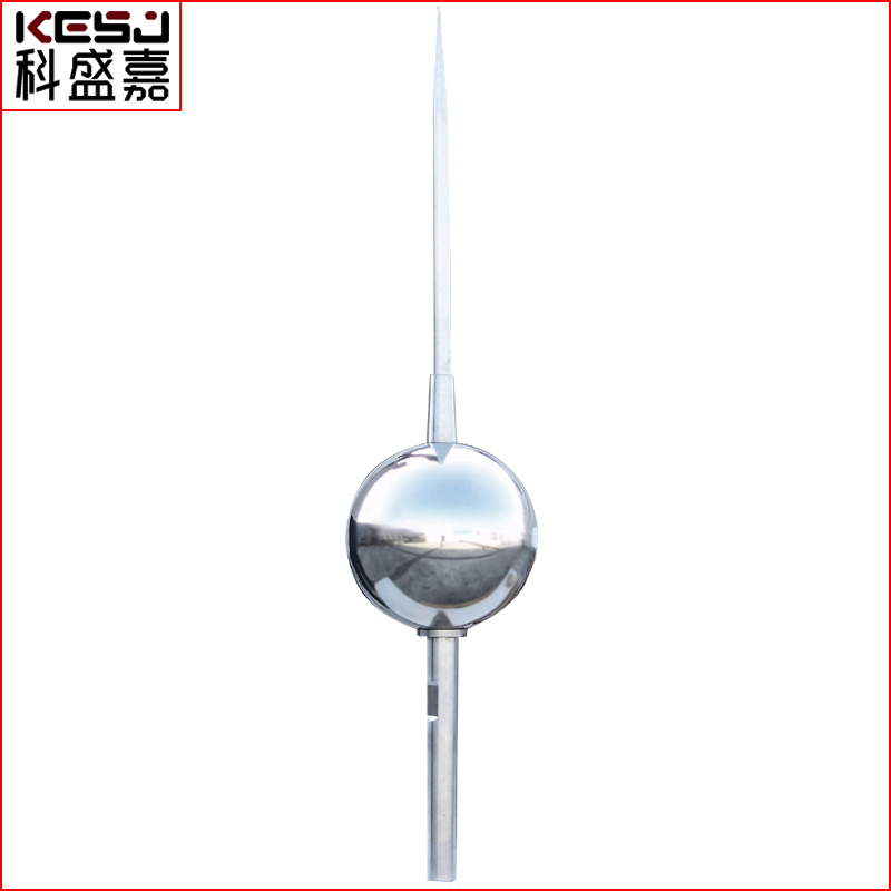 湘西科盛嘉公園雙球避雷針KSJ-Y2000/3000經(jīng)過全面升級完成,在法國馳名的SEDIVER測驗測驗室(巴薩特核心測驗測驗室)經(jīng)過研發(fā)過程的技術剖斷,并向全球馳名的供給第三方自力考驗,監(jiān)理和認證的權威機構提交認證,經(jīng)過該機構嚴格審核,獲得LR認證。需提早在安裝地位澆筑水泥基座,規(guī)格尺寸400mm×400mm×600mm(長×寬×高)并預埋地腳螺栓,或用膨脹螺絲。而它又聚積了大部分電荷,所以當云層上電荷較多時,避雷針與云層之間空氣就很輕易被擊穿成為導體。安裝時各部件間要毗連靠得住,安裝完成后,各毗連處或金屬概況涂鍍層有損傷處,應做好防銹措置。避雷針的核心匯集桿和激起器之間的電場活絡增長而造成尖端產(chǎn)生的空氣離子化可于極短及切確的時刻內放電,因大批電離子的存在,從而使自然的Corona效應減低,產(chǎn)生一預期上行放電通道,可活絡、安然地將雷電截擊及安然地泄放到大地。預放電避雷針的包庇半徑與高度(h)有關,與它的啟動爭先時刻(型號)有關,以及與所選的保護級別有關:當h<5時,見保護半徑表。不銹新型材料,耐侵蝕,抗風能力強。在同等條件下,湘西科盛嘉公園雙球避雷針與傳統(tǒng)避雷針相比,不管在泄流速度上面,還是在保護半徑上都遠遠大于傳統(tǒng)避雷針。將避雷針置于籌備妥的基座上(請求安裝基準面平行于高空),瞄準安裝孔用螺栓將底座與基座邊接在一路,將接閃器裝入球體頂端螺柱上,羅紋必須旋合到位,并旋緊。因限流避雷針的入地電流較少,是防直擊雷的理想設備。這是查核預放電型避雷針(ESE型避雷針)性能的重要指標。工作原理,當避雷針受雷擊時,由接閃器接閃,經(jīng)過過程氣隙放電,限流阻抗,將雷電流幅值、陡度減小。在雷電條件下,當雷電下行先導瀕臨高空時,任何導電的概況均會產(chǎn)生一個上行先導,然后經(jīng)過引下線引到地網(wǎng)上,經(jīng)過強大的地網(wǎng)快速泄流,從而真正做到了引開雷電流而保護了其他設備或人體免遭雷擊。